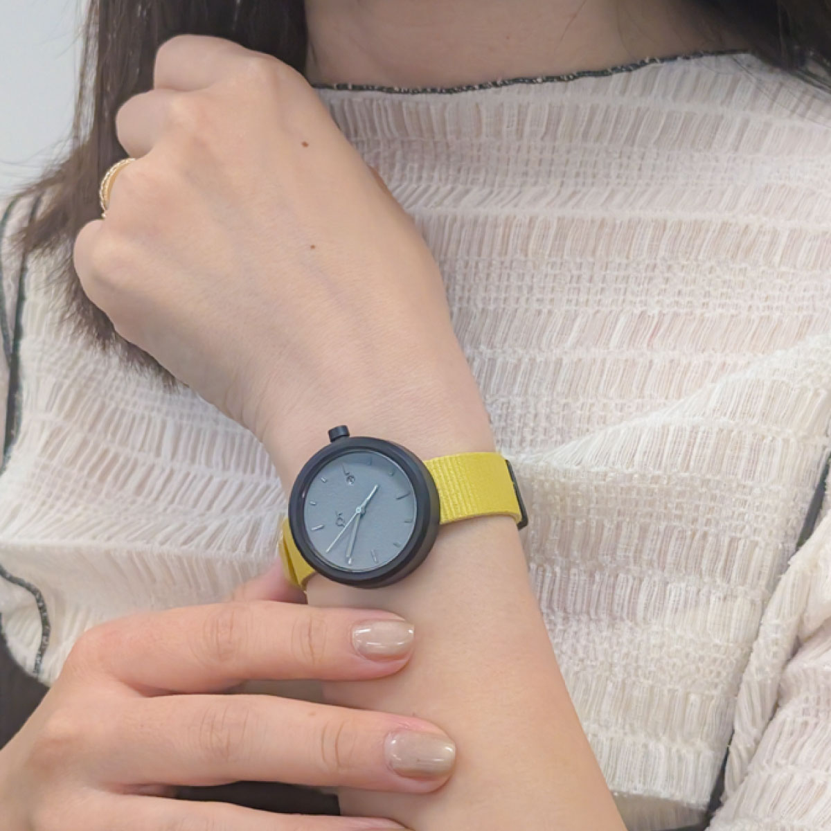 アンティーク風のデザインがお気に入り。電池交換不要のソーラータイプなのも嬉しいポイント。テクスチャの入ったメッシュベルトがきらりと輝きます。