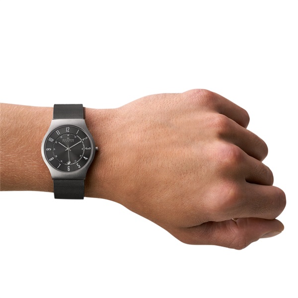 Grenenシリーズの元祖でもある233シリーズが待望の再登場。チタン製のケースは軽量かつ薄く、SKAGENのシグネチャーアイテムです。実用的なインデックスが映えるサンレイダイヤルは、視認性が高くどんなシーンにもマッチする万能なウォッチです。