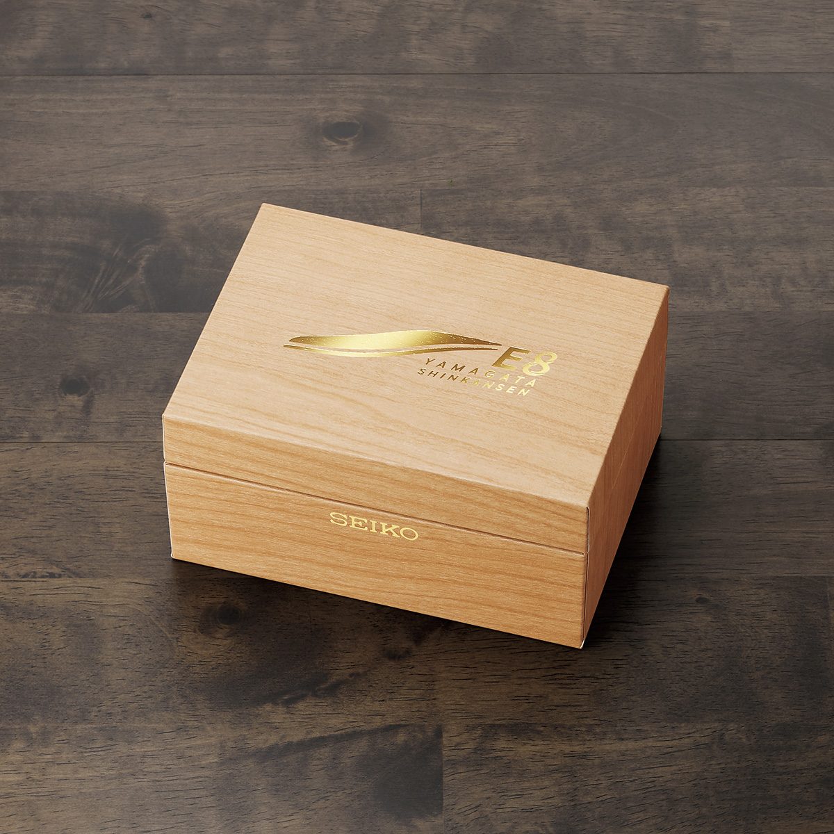 25年ぶりに華やかなデビューを飾った山形新幹線つばさの新型車両E8系。真新しい「つばさ」を得たこの歓びを、軽快な時のリズムにのせて分かち合う記念腕時計です。
