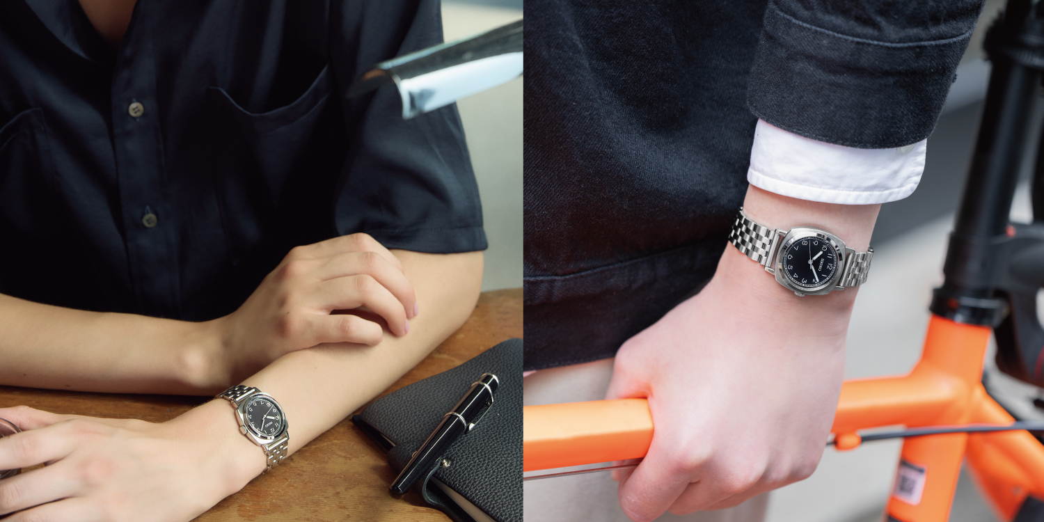 カジュアルに身に着けられるけれど、使いやすい安心感もある30mmのサイズ感は、男女問わずにお使いいただけます。針の形状やダイヤルレイアウトにもこだわって、ヴィンテージ感のある佇まいを実現しています。