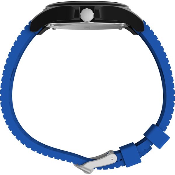 軽量なレジン製のレジンケースに宇宙飛行士のフライトスーツを想起させるネイビーのシリコンストラップを合わせ、機能性と冒険心をくすぐる魅力を兼ね備えています。
