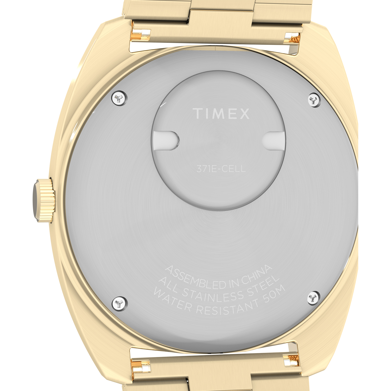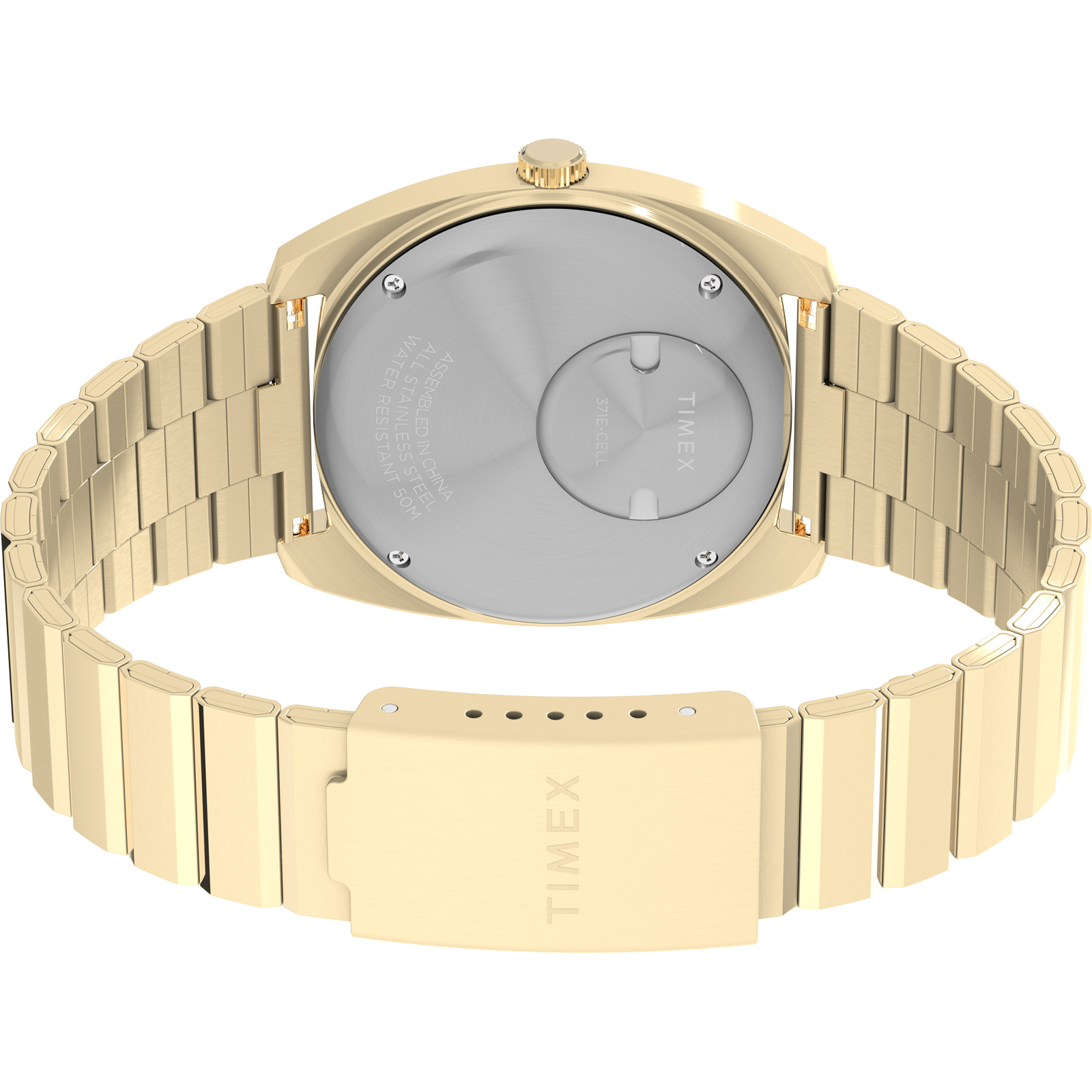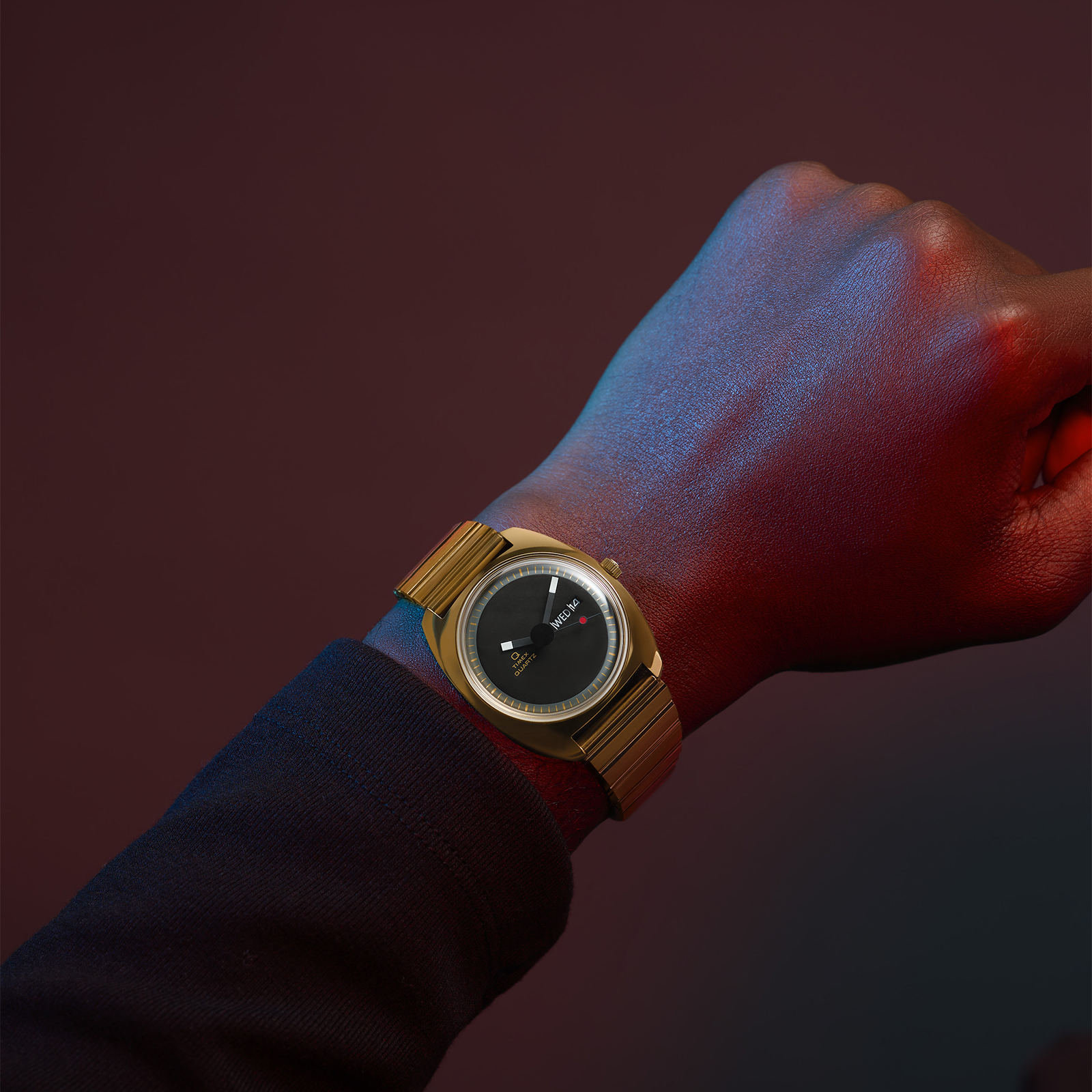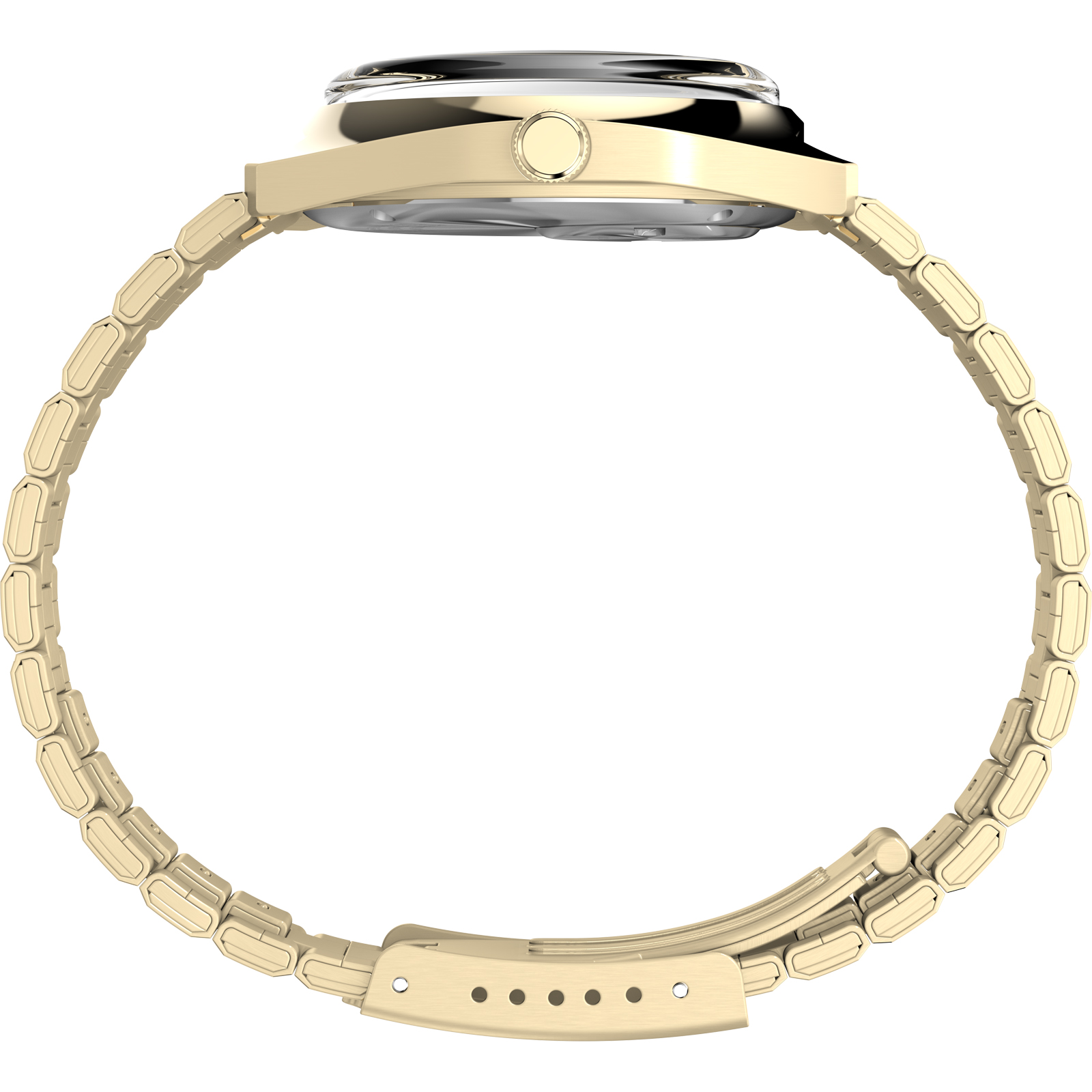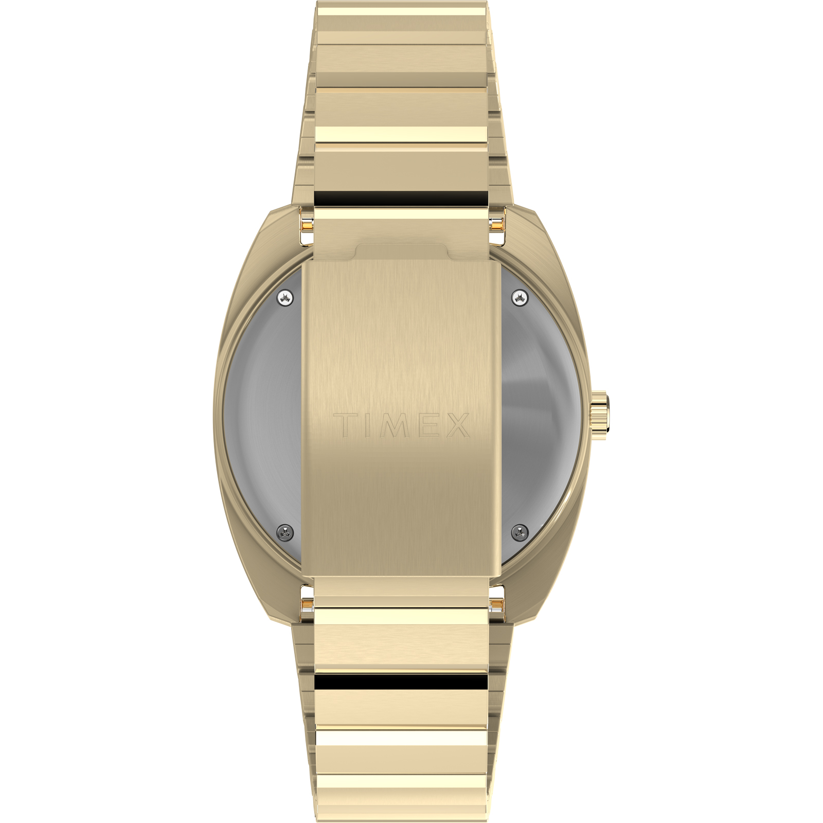 時計のシェイプといえば丸か角、という常識が覆された1970年代。 加工技術の進歩などもあり、ユニークなアイデアや実験的なデザインが生まれ多くの名作時計が生まれました。ミッドセンチュリー期を経た1975年、当時まだ新しかったクォーツラインから発売されたこちらはクッションシェイプと呼ばれる37mm幅のステンレススチール製ケースにブレスレットを合わせ、針の根元を文字盤と同色にすることで時針、分針、秒針が浮いているように見える“フローティング”というギミックのデザインを採用。 そのコンセプトと見た目から、ファンの間では「ミステリーダイアル」のニックネームで呼ばれるモデルに煌びやかなゴールドモデルが登場。ヴィンテージのようでいて新しさも感じられる、タイメックスのアーカイブから選ばれたユニークなモデルをお楽しみください。