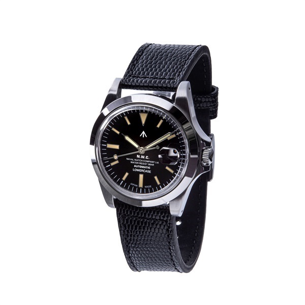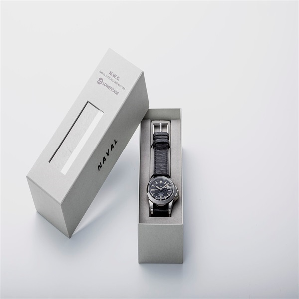 商品開発アドバイザーとして、LOWERCASEクリエイティブディレクター梶原由景氏を新たに迎え、NAVAL WATCHが得意とする本来のミリタリーウォッチデザインをベースに、ヴィンテージ感と現代的なエッセンスを絶妙なバランスでミックスさせ、時代の空気感に相応しい「アーバンミリタリーウォッチ」をコンセプトに完成させたコレクションが、「NAVAL WATCH Produced by LOWERCASE」です。ビンテージウォッチをベースに、ケース形状・ドーム形状アクリルレンズ・針を全てオリジナルデザインを起こし、細部に現代感とビンテージ感にこだわり製作致しました。ケース及びケースバック素材は316Lステンレススティールを使用。ベゼルはアンティークダイバー腕時計にあるクリック感の無い両方向に回転する仕様で製作致しました。バンドはオリジナルバックル付き ポリエステル製NATOタイプバンドを採用。風防はアンティーク感を出すためにアクリル製ドーム形状の風防に製作しました。日本製オートマチック自動巻ムーブメントを採用し、機能面でも現代の使用に耐えうる製品となってます。文字盤上の数字・インデックス・針の蓄光塗料にはスイス製腕時計にしか使用を許されていない「LumiNova(R)」塗料を採用し、さらにヴィンテージ感を追求してアイボリー色に着色しております。(本モデルの蓄光は雰囲気を重視したために他モデルのルミナスより幾分蓄光時間・光が劣ります。)ヴィンテージ感あふれるレザーベルトがポイントです。