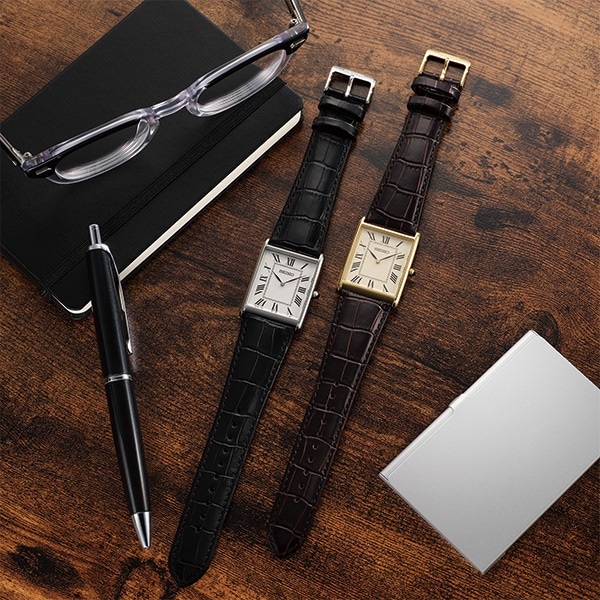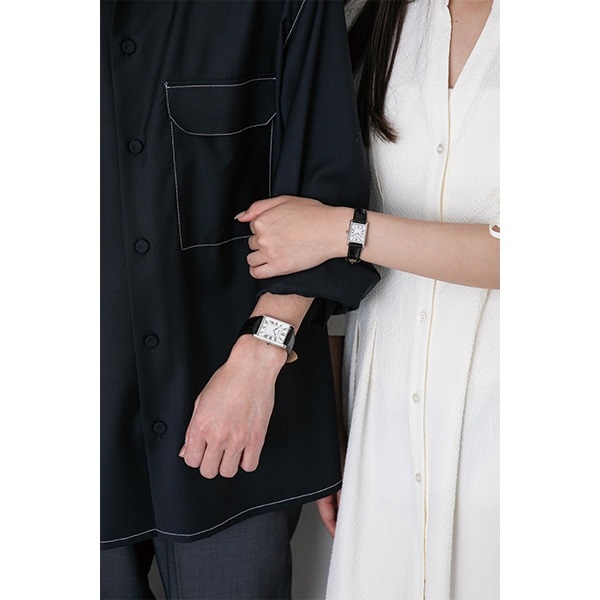 大振りなケースを採用しており、コーディネートのポイントになる1本です。 レザーストラップ色・ダイヤルカラー等を「ナノ・ユニバース」がセレクト。 ダイヤルのレイアウトはレディスモデルとペアで楽しめる雰囲気を残しながら、メンズサイズとしてバランスが良い略字やミニレールの太さにしあげました。