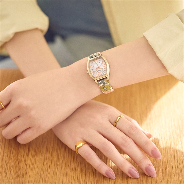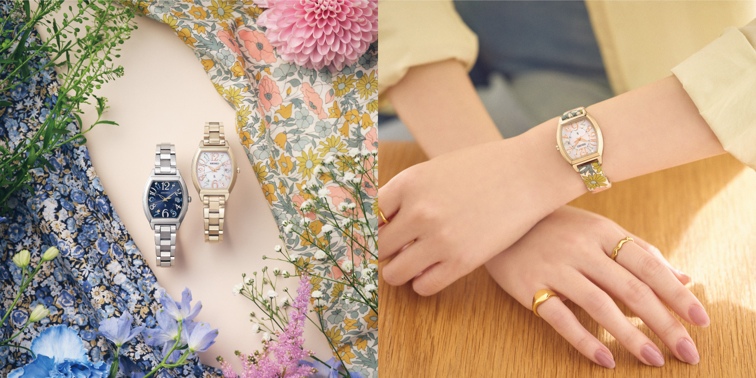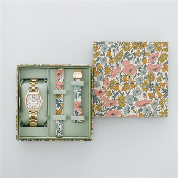 英国・リバティ社のリバティプリントで仕立てた、特別な付け替えストラップとスペシャルボックスが付属した特別な限定モデルが登場します。セイコー ルキアのデザイナーとリバティジャパンのチームが共同で、それぞれの腕時計に調和するリバティプリントを厳選しました。1900年代初頭の誕生以来リバティのベストセラーデザインである、ポピーとデイジーの花をモチーフにした「ポピー・アンド・デイジー」を採用。腕時計のダイヤルには鮮やかな色調に合わせ、腕時計のケースやインデックスに多彩なカラーを取り入れました。手元に華やぎを添えてくれるデザインです。国内限定500本。