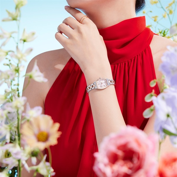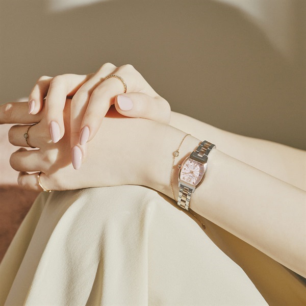 ブランド誕生30周年を祝福し、大人気のロングセラーデザインをミニサイズ化しラボグロウン・ダイヤモンドをあしらった、幸福感溢れるルキアが登場。2011年に発売して以来、デザインコードを継承しながら時代に合わせてアップデートを重ねてきたロングセラーのアラビアデザインを、ルキア30周年となる今年「Happy Collection」としてコレクション化します。おおらかなトノー型のフォルムに、はじけるようにレイアウトされた丸みのあるアラビアフォントが特長。ルキアで長年愛され続けている見るたびに心躍るデザインとなっております。1時・7時位置には、クローバー型の台座にセッティングされたラボグロウン・ダイヤモンドが輝きます。りゅうずはダイヤル上のダイヤ台座と連動感のあるクローバー型の新デザインを採用しております。クオーツモデルならではの柔らかなピンクゴールド“Silky Pink”でまとめており、優しいカラーリングが見るたび幸福感を感じられる、愛らしいモデルとなっております。