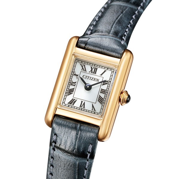 ヴィンテージ調の雰囲気を漂わせながらも、優しさと落ち着きを感じるデザイン。サイドに丸みを持たせたケースが、洗練された優しさを醸し出します。ローマ数字で統一したインデックスと型押しを施した牛革バンドが、落ち着きのあるクラシカルな表情を際立たせています。少し大きめのりゅうずが小ぶりなケースにアクセントを添えます。※裏ぶたの生産国に関する刻印は実際の商品と異なる場合があります。