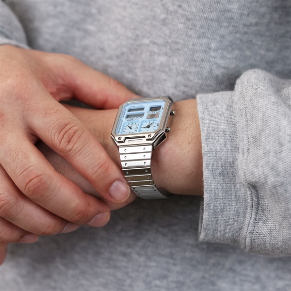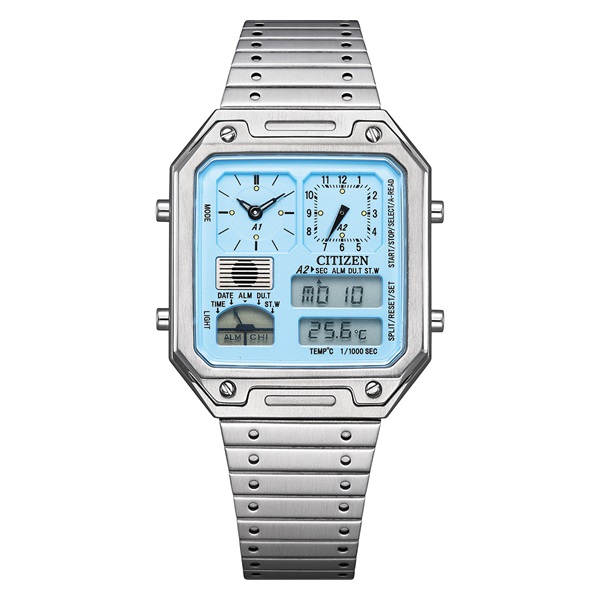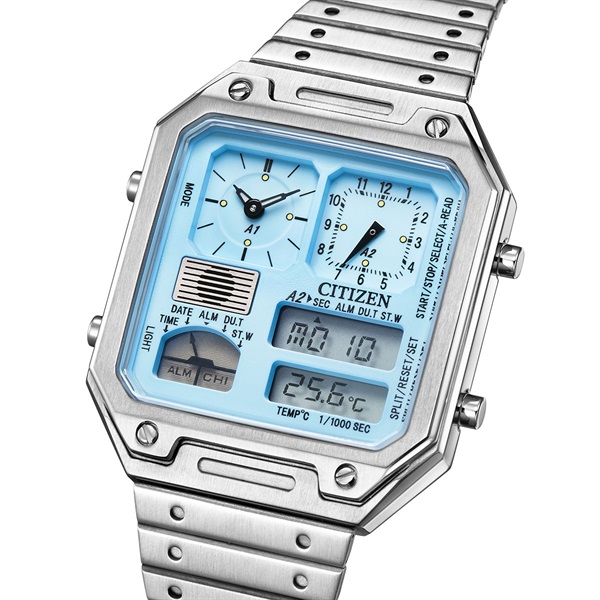 ■ケース素材:ステンレス■風防素材:クリスタルガラス■ベルト素材:ステンレス■仕様:クォーツ・電池寿命切れ予告機能・パーペチュアルカレンダー・照明・デイ&デイト表示・日付早修正機能・12/24時間表示切替機能・1/1000秒クロノグラフ(12時間計)・デュアルタイム機能・温度計機能・アラーム・時報・日常生活防水