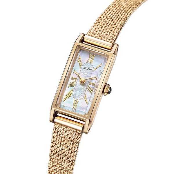 ■ケース素材:ステンレス■風防素材:カーブクリスタルガラス■ベルト素材:ステンレス/替えバンド(牛革)付き■仕様:Eco-Drive・充電警告機能・過充電防止機能・時刻合わせ告知機能・フル充電時約8ヶ月可動・白蝶貝文字板・日常生活用防水