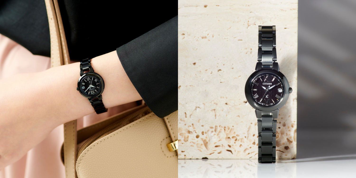 前を向く女性を応援するエンパワーウオッチブランド、シチズン xC(クロスシー)。クールでハンサムな印象の中にも女性らしい柔らかさが感じられる、オールブラックカラーの限定モデルです。数量限定1,300本。