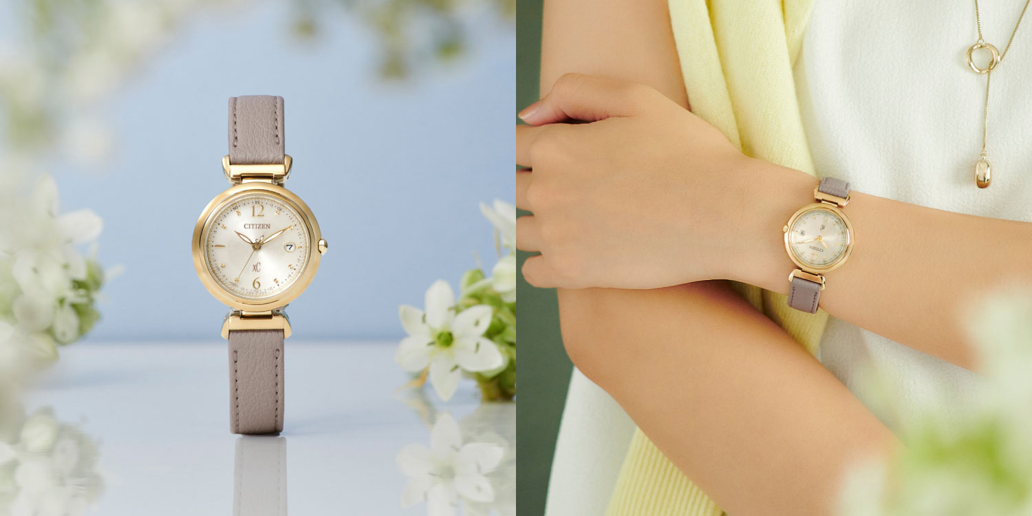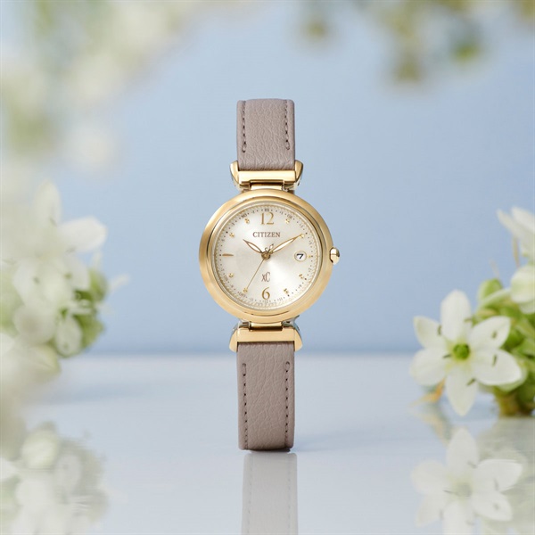 前を向く女性を応援するエンパワーウオッチブランド、シチズン xC(クロスシー)。透明感あふれるカラーとやわらかなフォルムが、手元をみずみずしく彩る「mizu collection」の新作。繊細な可愛らしさを表現したアラビア数字インデックスモデルです。露のようにキラキラ輝く8個のカットパーツと、9時位置にセッティングされた雫型のカットパーツが、水面に広がる波紋をイメージしたケースラインとともに、手元を美しく彩ります。