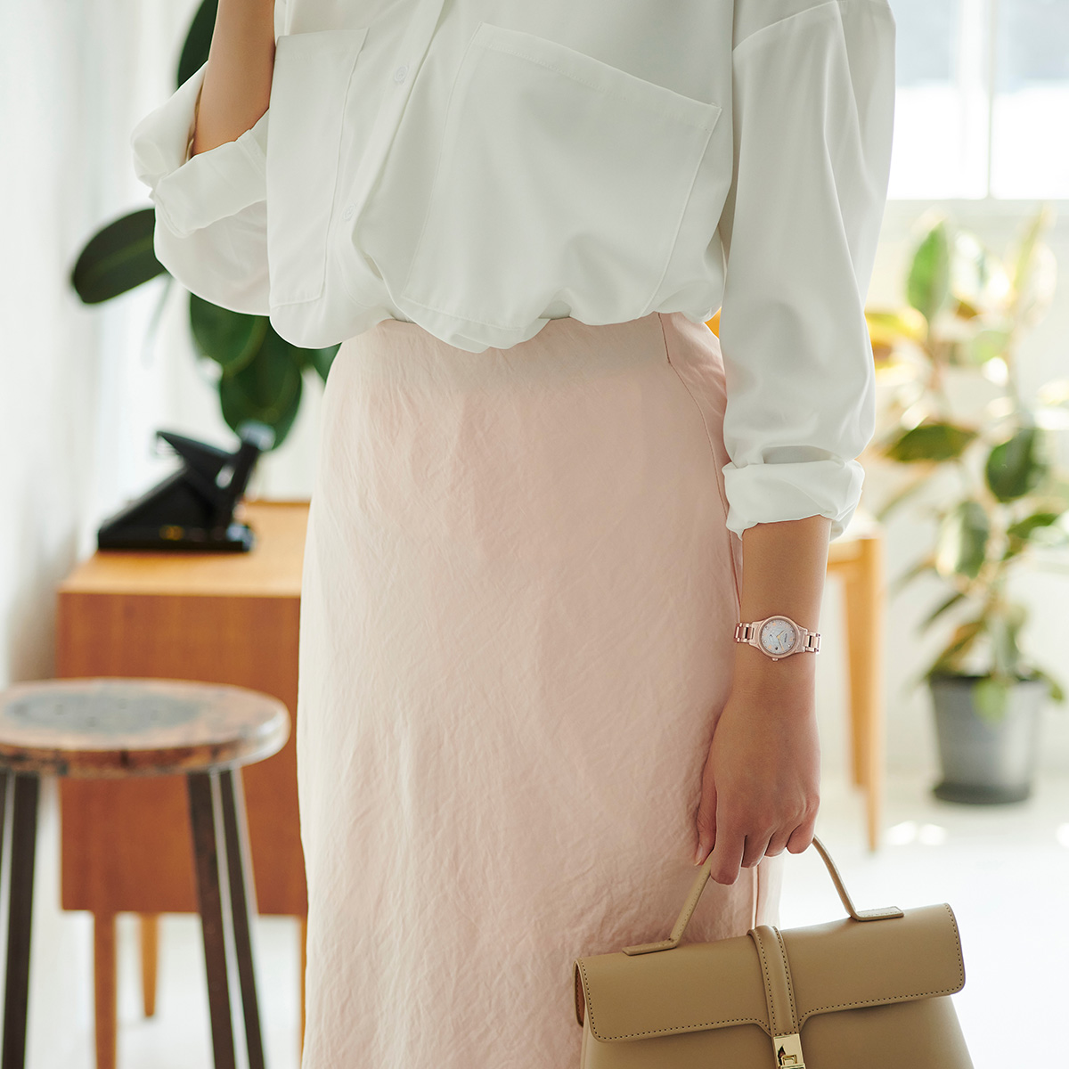 ■ケース素材:スーパーチタニウムデュラテクトサクラピンク(サクラ色)■風防素材:球面サファイアガラス(無反射コーティング)■ベルト素材:スーパーチタニウムデュラテクトサクラピンク(サクラ色)■仕様:エコ・ドライブ電波時計・白蝶貝文字板・文字板5ポイントラボグロウン・ダイヤモンド入り・充電残量表示機能・充電警告機能・過充電防止機能・パワーセーブ機能・フル充電時約3年可動(パワーセーブ作動時)・日中米欧電波受信・受信局自動選択機能 定時受信機能・強制受信機能・パーペチュアルカレンダー・日付表示・ダイレクトフライト・ワールドタイム機能(24時差)・サマータイム機能・5気圧防水