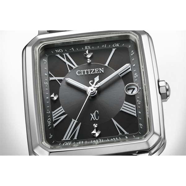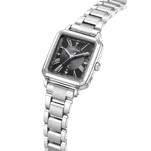 優しくフェミニンなクロスシーらしいケースライン。軽く、薄く、大きすぎないサイズ感で、スクエアを柔らかな印象へ導きます。インデックスは、伸びやかなローマ数字をラウンドに配置しつつ、12時、6時、9時の輝くカットパーツはhikariコレクションの特長です。シーンに合わせて印象が変えられる付け替えバンドがセットされているので、ご自身で付け外しができるインターチェンジャブル構造を採用。メタルバンドは、好みの長さに調節できるシンプルアジャストです。クールなエターナルプラチナ。替えバンドには環境にやさしいECOPETのカーキをセレクト。すっきりとマニッシュな雰囲気をかなえる組み合わせです。