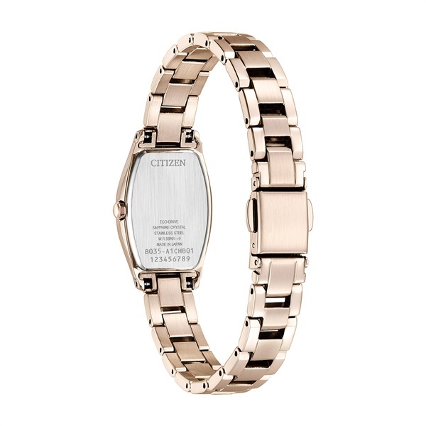 ■ケース素材:ステンレス(サクラ色めっき)■風防素材:カーブサファイアガラス■ベルト素材:ステンレス(サクラ色めっき)■仕様:エコ・ドライブ・充電警告機能・過充電防止機能・秒針停止機能・フル充電時約7ヶ月可動・シンプルアジャスト・5気圧防水