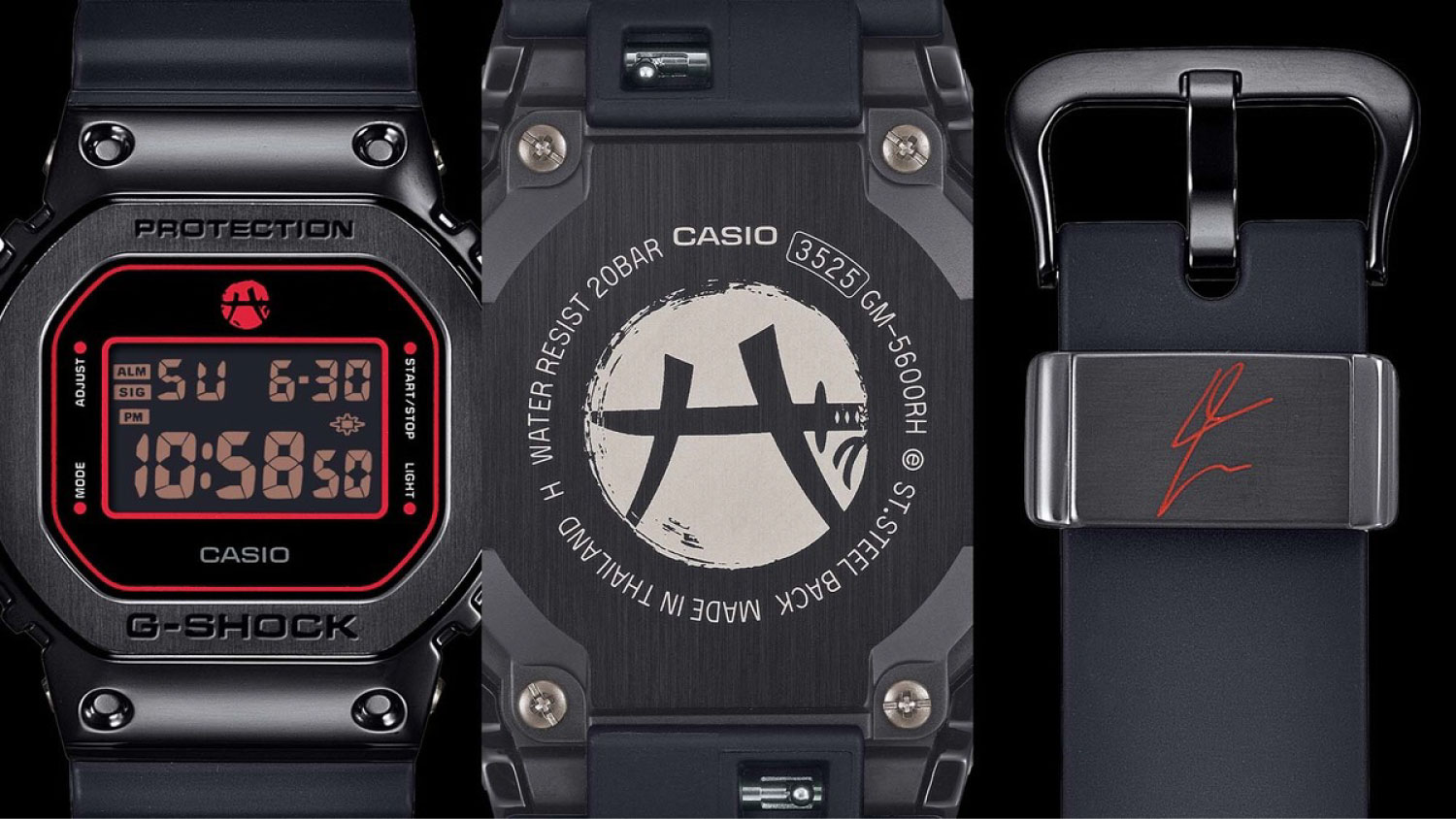 NBAプロバスケットボールプレーヤー八村塁選手とのシグネチャーモデルの第5弾です。メタルベゼルが特徴のGM-5600をベースモデルに採用し、力強いブラックを基調に、情熱的なレッドのアクセントカラーをあしらいました。