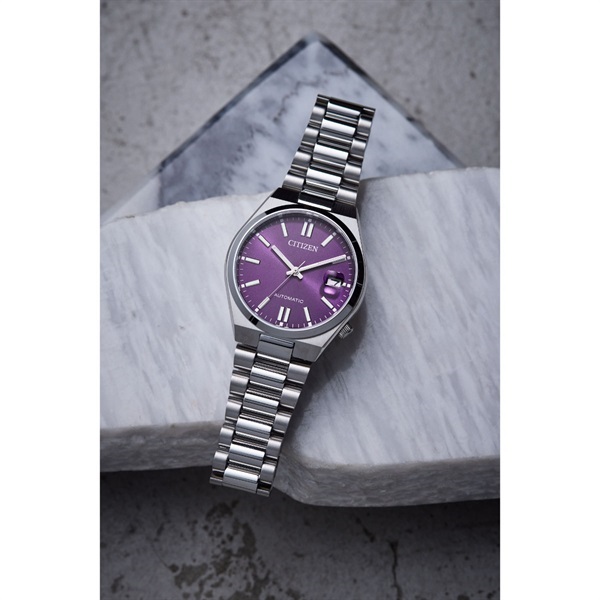 豊富なカラーバリエーションで海外でも人気のTSUYOSAから、やや小ぶりなサイズ感が魅力のケース径37mmが登場。女性の腕にもなじみやすいユニセックスモデルです。メタリックな質感の文字板に、シンプルな針とインデックスを組み合わせた3針タイプ。カレンダー部分には視認性を高める拡大鏡レンズを採用しています。