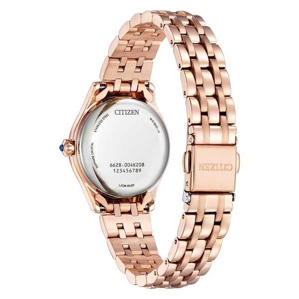 ■ケース素材:ステンレス(ピンクゴールド色めっき)■風防素材:球面サファイアガラス■ベルト素材:ステンレス(ピンクゴールド色めっき)■仕様:自動巻き(手巻き付き)・最大巻上時約40時間持続・日差+40秒~-20秒・白蝶貝文字板・文字板:1ポイントクリスタルガラス入り・5気圧防水